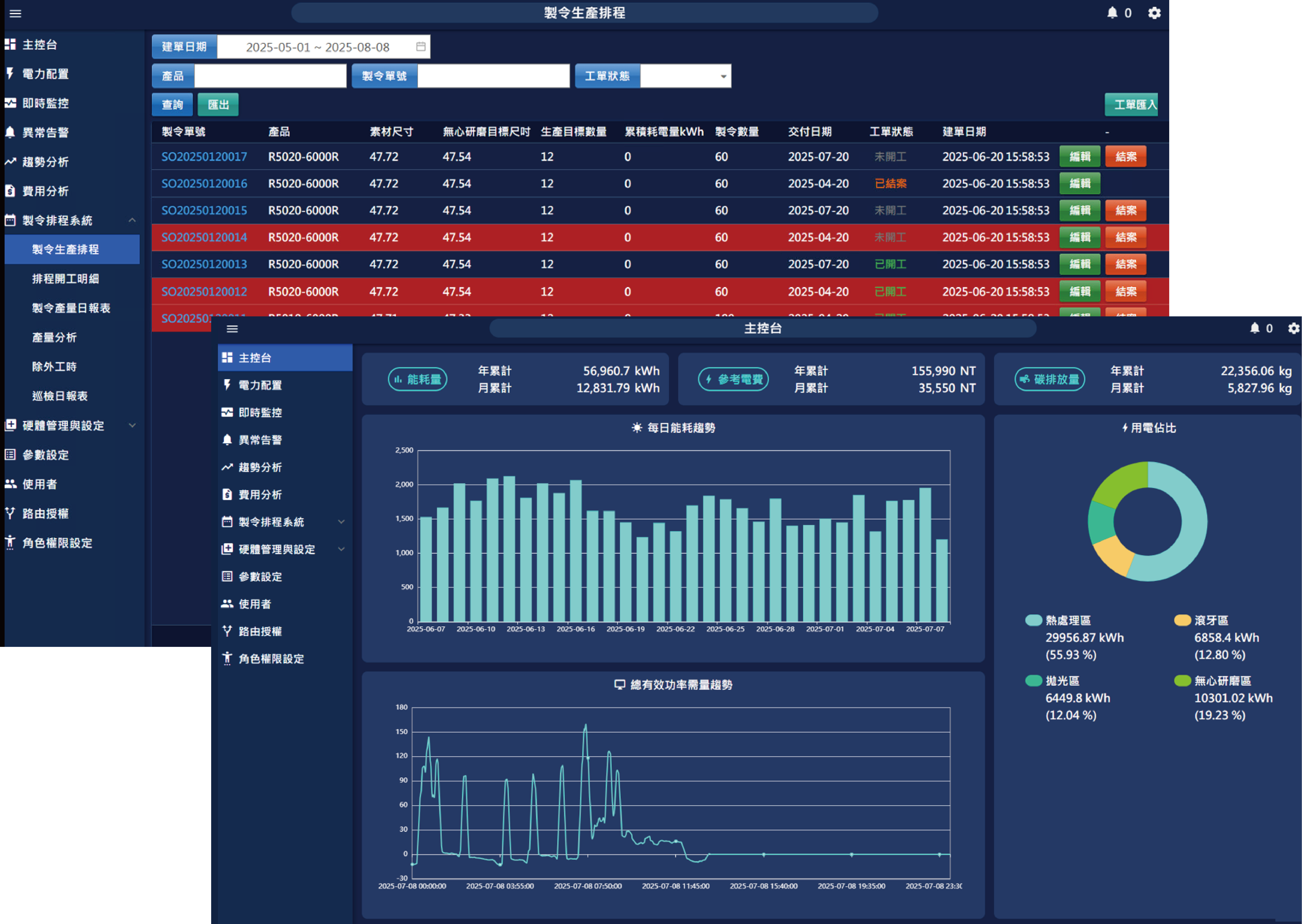 本系統可與 ERP 深度整合,讓生產、設備與能源形成完整閉環,有效提升設備利用率、減少浪費並強化營運決策。