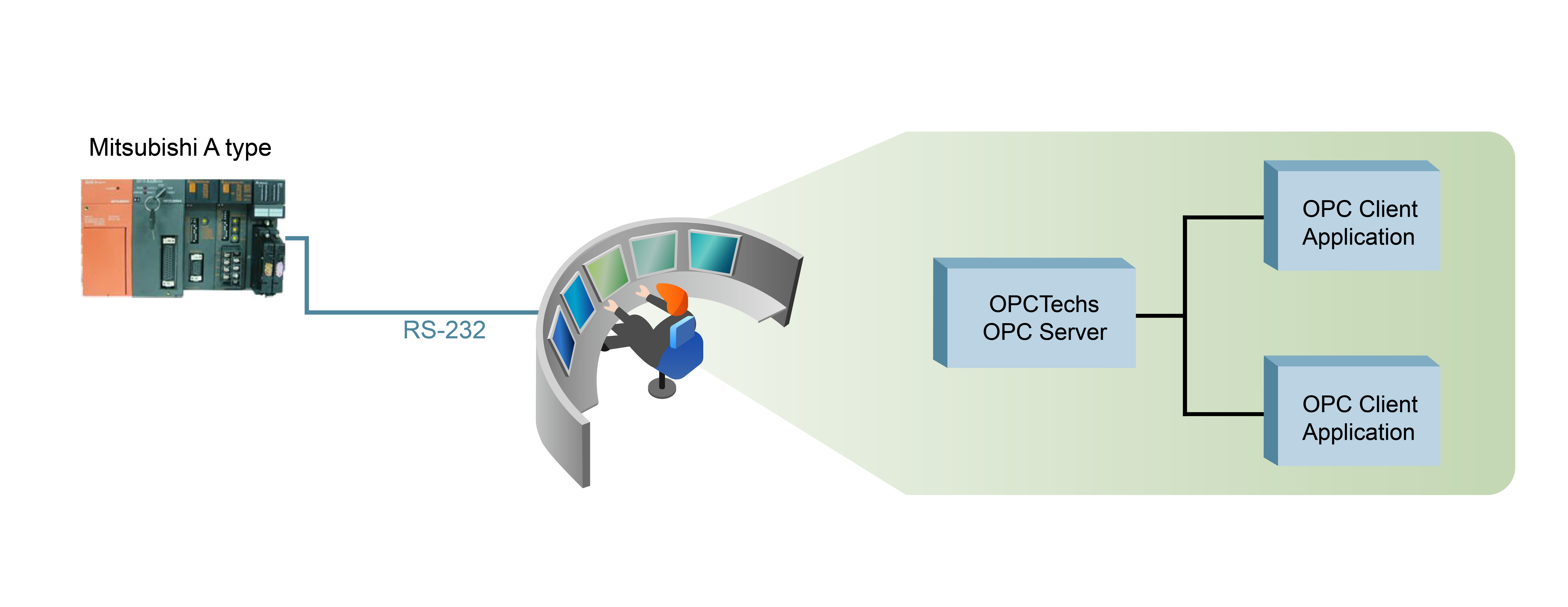 Mitsubishi Melsec OPC Server 320 is a software package developed by OPCTechs Technology Corp. for the Mitsubishi all series of PLC in serial communication. It is totally based on OPC 3.0 standards, and is suitable for the software integration domain. Melsec FX、Melsec A、 Melsec Q is the protocol presented by Mitsubishi Corp. OPCTechs OPC server could connect with all series of the Mitsubishi PLC in serial communication.