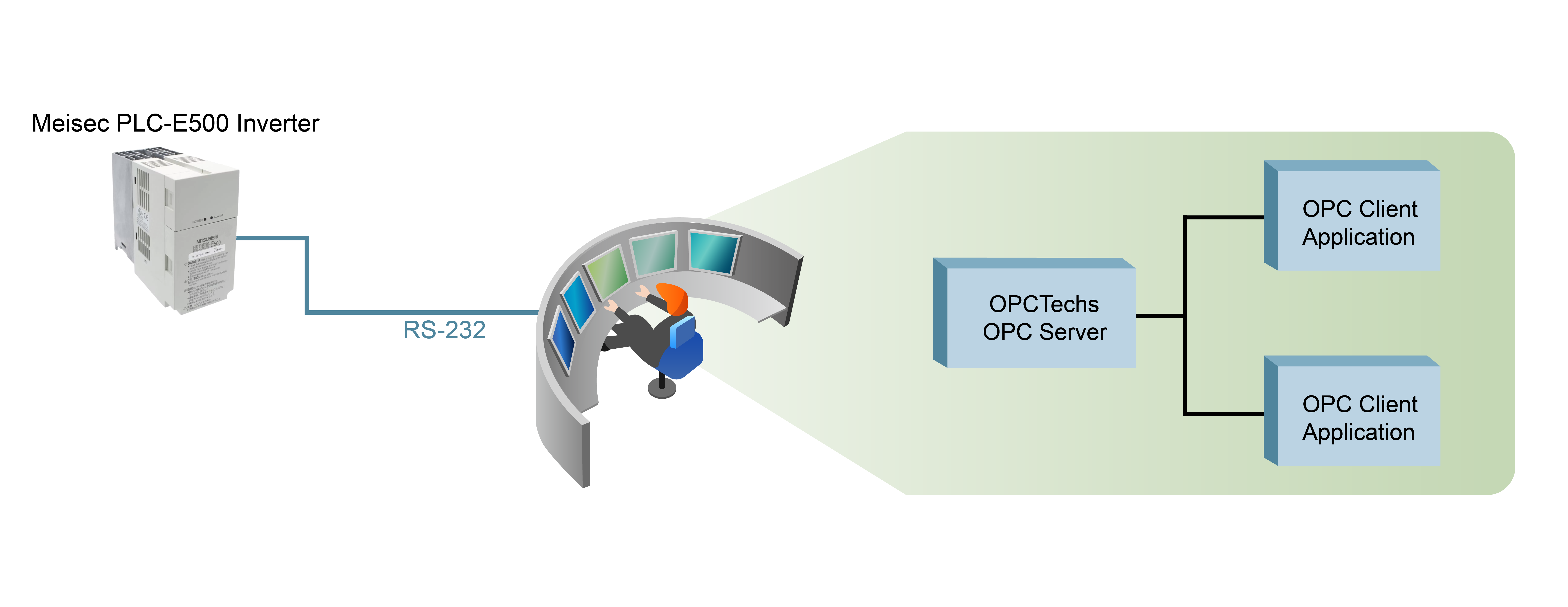 Mitsubishi E500, E700 Inverter OPC server320 is completely based on OPC 3.0 standards, and is suitable for the software integration domain. It provide OPC DA, AE, XML Server in one OPC Server. E500 inverter provide proprietary protocol which was presented by Mitsubishi Corp. It could connect with all Mitsubishi E500 series inverter.