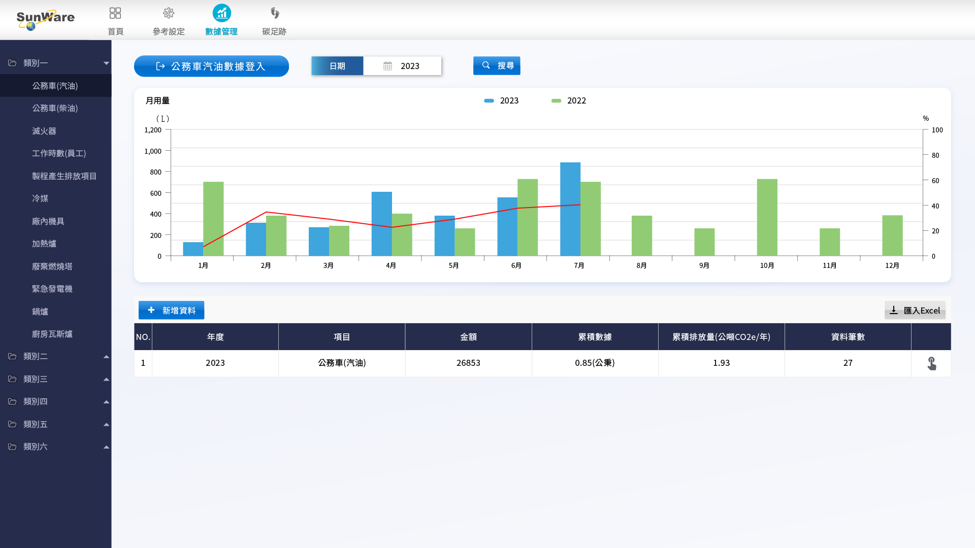 2.輸入ESG碳排資料-類別1-公務車