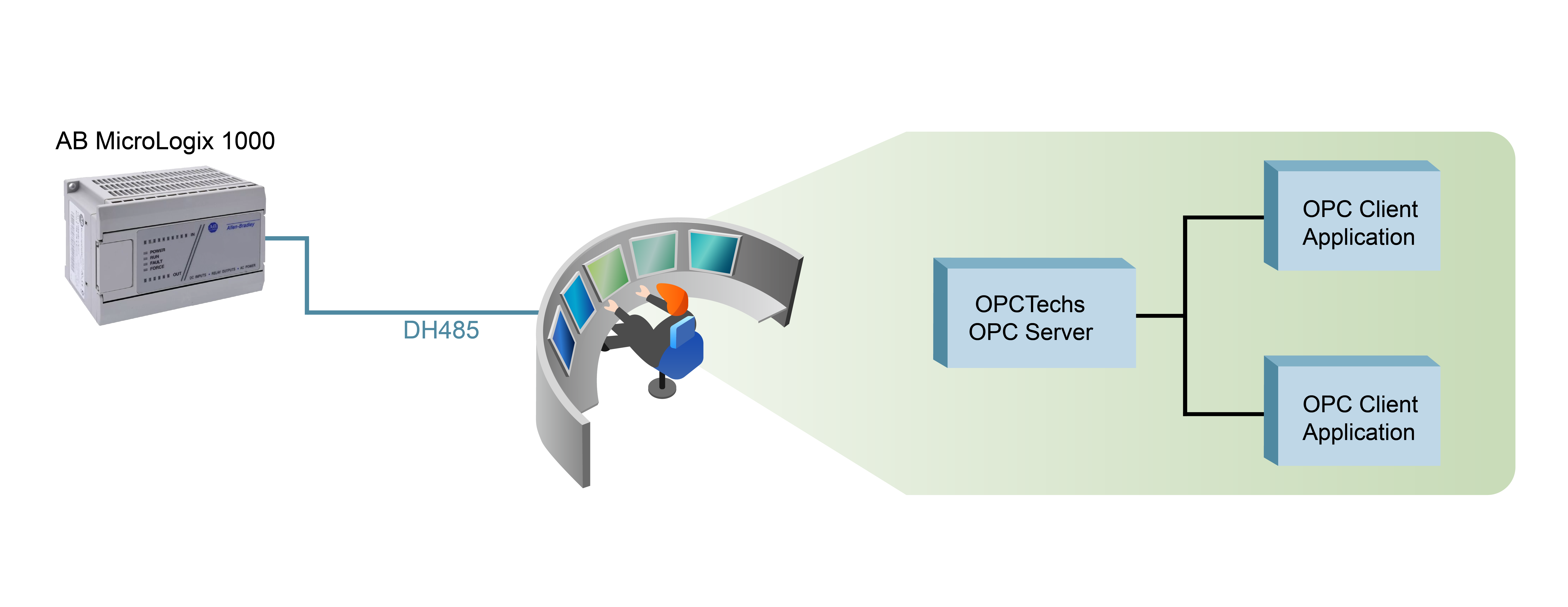 Allen Bradley DH485 OPC Server 320 followed the standard OPC 3.0 Specification. It is suitable in the integration fields in every walk of life. DH485 protocol is a standard communication protocol working on AB PLCs. OPCTechs DF1 OPC server could connect with all series of Micrologix, SLC PLC by serial communication. But you have to buy the AB DH485 module for communication.