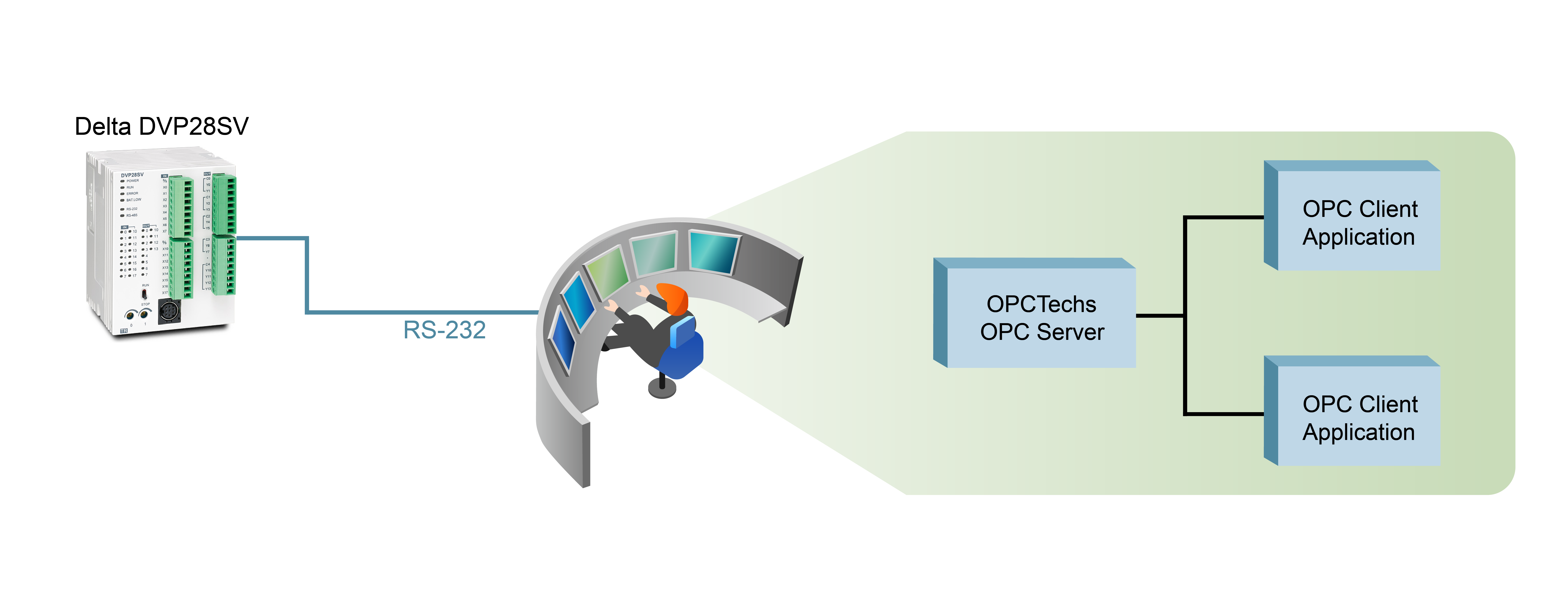 Delta OPC Server 320 was developed by OPCTechs Technology Corporation. According to the standard OPC 3.0 Specification, we developed the packaged software for our extended customers especially in the automation fields. It is suitable in the integration fields in every walk of life. Delta PLC follows the Modbus like protocol. We combine the OPC DA, AE, XML Server in one software. The Delta OPC Server could connect with all series Delta PLC.