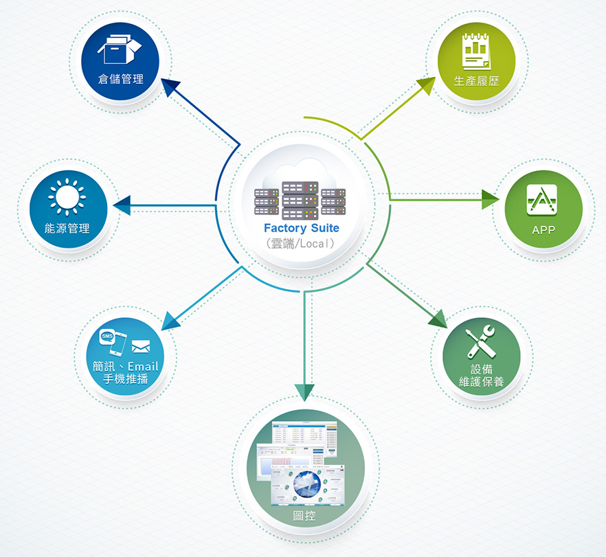 線上遠端管理和設定,提供配方及報表功能。
