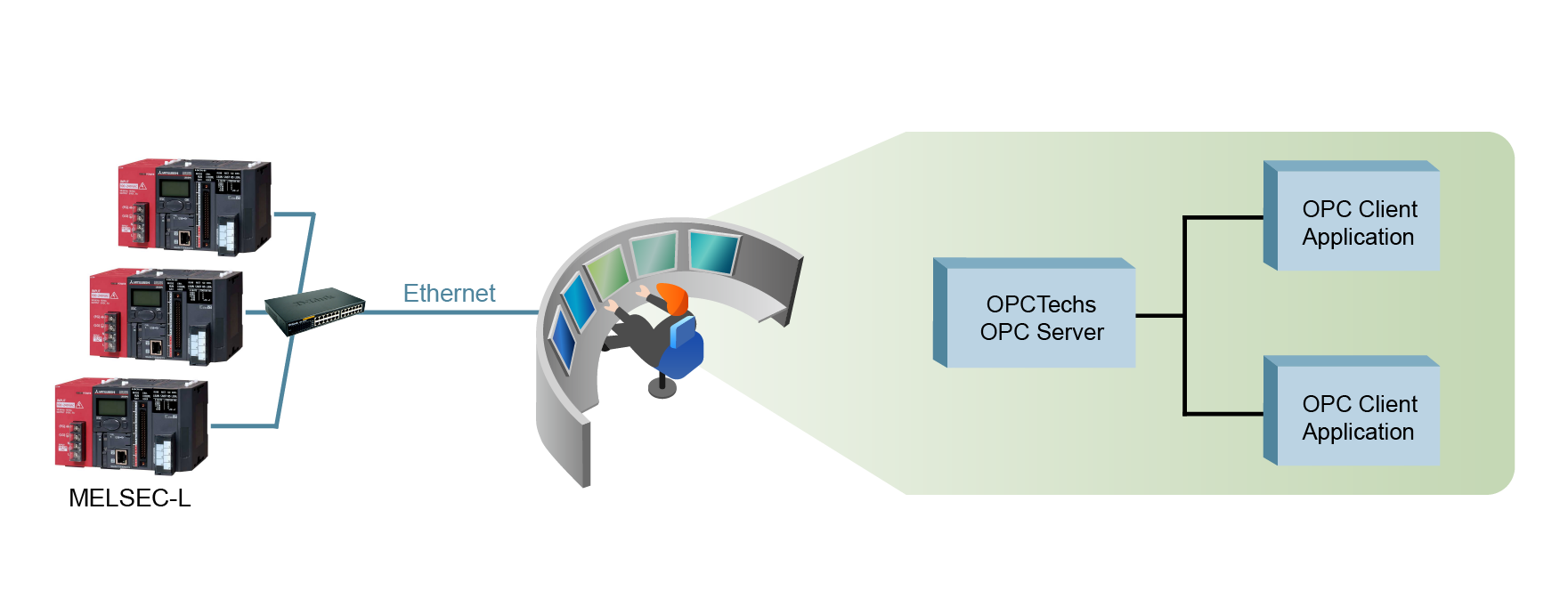 MelsecNET OPC Server 320 is a software package developed by OPCTechs Technology Corp. for the Mitsubishi A,QnA and Q series PLC Ethernet module. it is totally based on OPC 3.0 standards, and is suitable for the software integration domain. Melsec A Ethernet、Melsec Q Ethernet is the protocol presented from the Mitsubishi Corp. MelsecNET OPC server could connect with all series of the Mitsubishi Ethernet PLC.