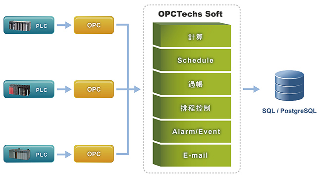 搭配過帳功能,可將資料庫對應Table中的數據做MAX、MIN、AVG等計算,並儲存至新的Table中。(過帳時間設定為10、30、60 分鐘)