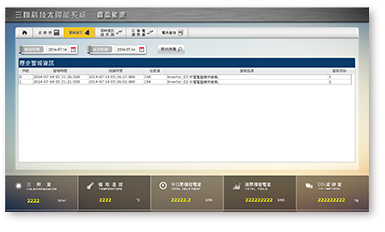 具備異常事件判斷及相關警報輸出功能,透過發布郵件方式通知管理人員,確保太陽光電系統處於最佳發電狀態, 可自行定義異常邏輯及等級,有效的發送信息,並可透過系統進行歷史查詢,讓管理者減少設備異常所導致的損失