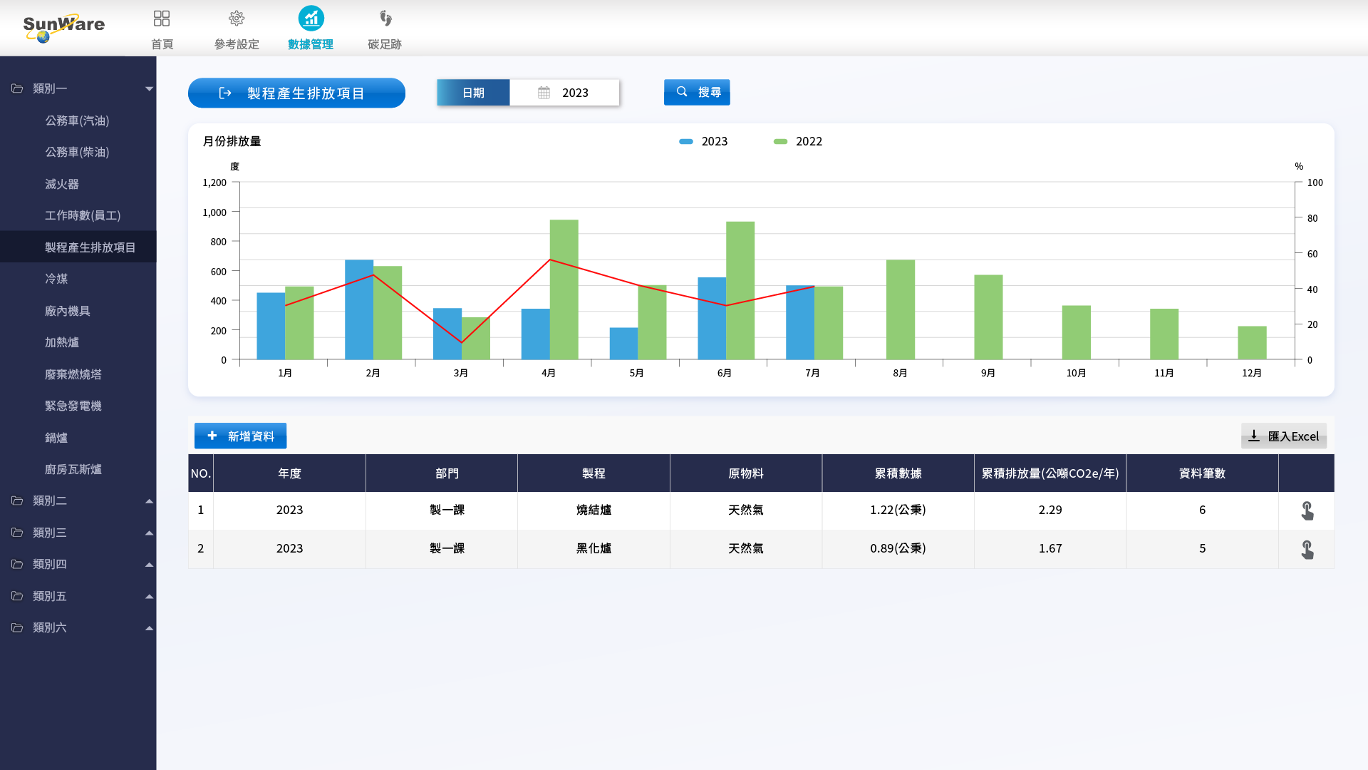 4.輸入ESG碳排資料-類別1-製程項目